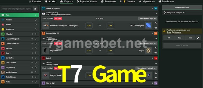 A aposta T7 Game oferece aos jogadores a experiência mais conveniente de apostas em eSports!